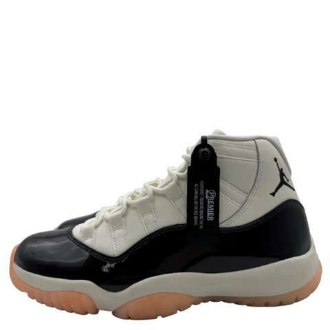 The Air Jordan 11 Retro 'Neapolitan (2023)' arrives in a delightful blend of earthy tones and creamy accents, reminiscent of the classic Neapolitan dessert. Featuring a premium leather and patent leather upper, this sneaker combines durability with a sleek, glossy finish. Key design elements include the iconic Jumpman logo on the heel and the distinct lacing system that provides a snug fit. Its midsole is crafted from a supportive foam material, offering comfort and cushioning, while the translucent rubber outsole ensures traction and grip. The shoe's aesthetic is completed with subtle branding details on the tongue and heel, making it a timeless addition to the Air Jordan lineup.